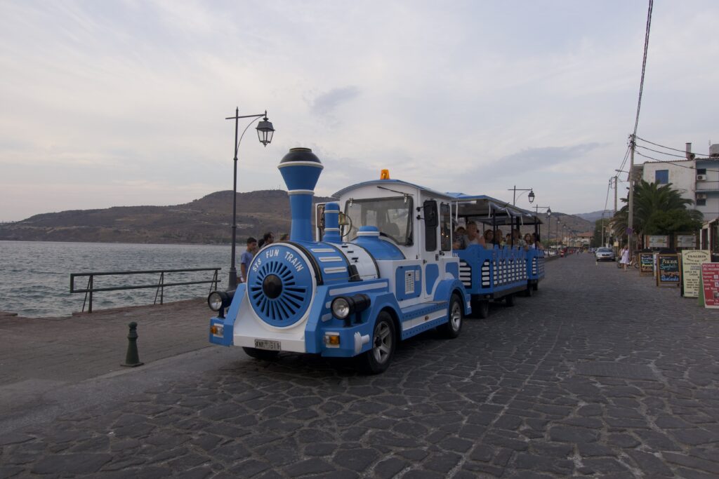 If you're staying in Petra, you can visit Molivos and then return. These two beautiful settlements are only 6 km apart. There's even a miniature train that runs between them if you don't have a car. The train, which runs approximately 10 times a day, costs €5 round-trip in 2016. If you buy a round-trip ticket, you can get on and off wherever you want. You can buy your ticket on board. Explanations are provided in Greek and English